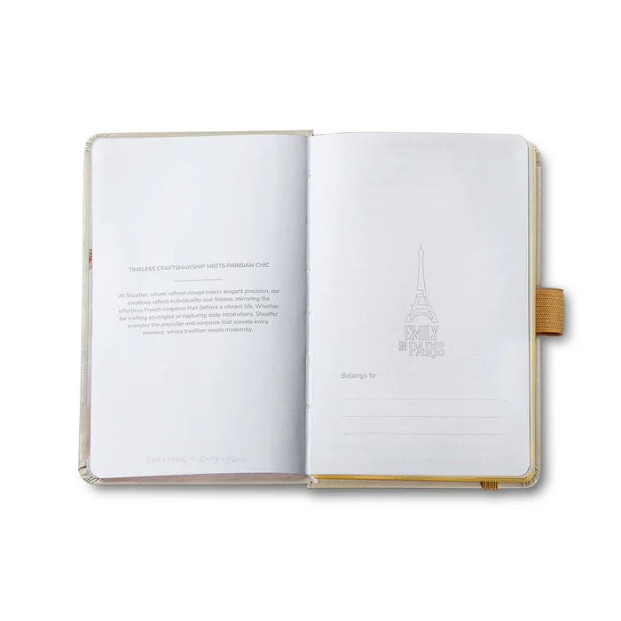 Set de Regalo Sheaffer con Emily in Paris: Bolígrafo 100 9377 Oro Champaña con Acabados a Tono y Cuaderno Pequeño de Tapa Dura